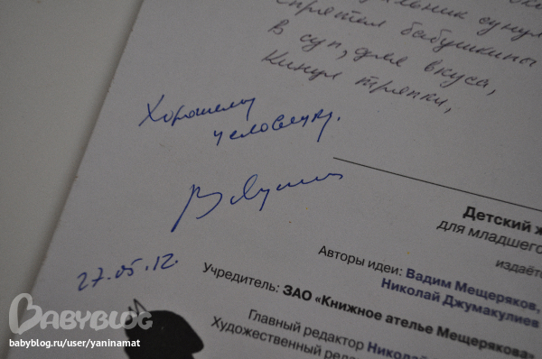 Автографы на Тарараме от Виктора Лунина и Даши Булычевой)))) Журнал нам очень понравился!!!