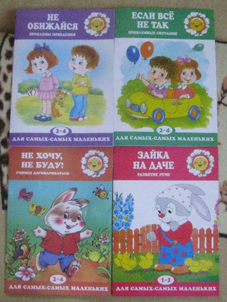 Много хороших отзывов по поводу этих книг читала, а у меня особого восторга они не вызвали. Зато моему ребенку ну просто очень понравились. Тащит мне их постоянно. Про Зайку можем подряд раза 3-4 читать))) А мне не нравиться, что проблемные ситуации какие-то не завершенные остаются, ребенок не всегда может сделать вывод как правильно себя вести. Поэтому мои рассказы по этим книгам слабо похожи на оригинал, но главное, что сын в восторге)))