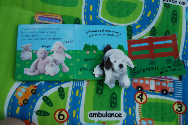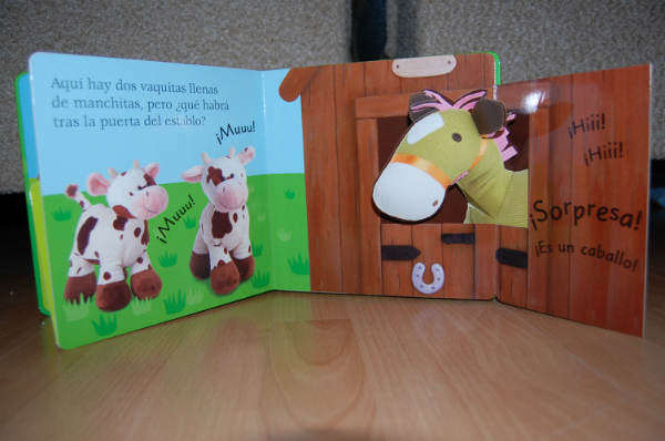 Первая - стихи Глории Фуэртес (это больше для мамы), вторая - малышковая книжка-игрушка про жирафа, а третья - книга с объемными картинками про ферму.