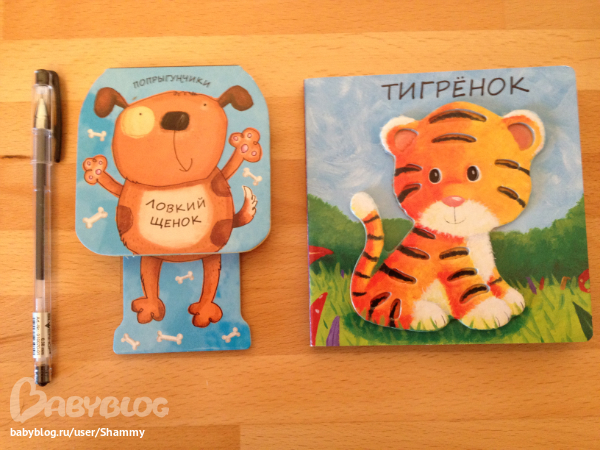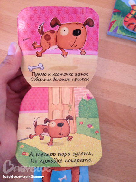 Ловкий щенок из серии Попрыгунчики. Там буквально 2 разварота. А по середине - лапки. Так вот, на лапки надо надавить и тогда книжка будет подпрыгивать)