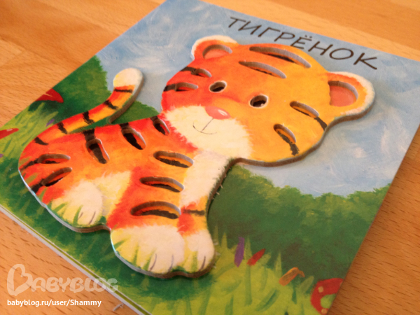 А вот книга про тигренка. Миленькая - сил нет! И вот такой выпуклый пушистик сверху - так аккуратно сделано, что кажется, что он как минимум из керамики. Ан нет - картон)