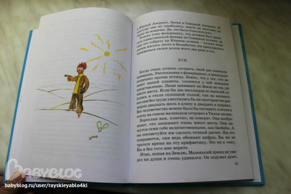 Маленького принца у нас пока не было, я его, в принципе, хотела иметь в библиотеке, и, поскольку это тоже не моя любимая книга, особых требований к ней, кроме иллюстраций автора, у меня не было. Этот вариант всем хорошо, кроме уродской обложки: