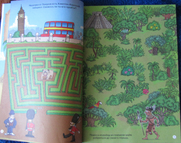 Это уже не книжка, а скорее - развивалка/игралка/маме_помогалка. Почему я не купила эти Лабиринты раньше??? Ведь знала, что мальчишки любят выбираться из таких на первый взгляд кажущихся тупиков. Здесь мнооого лабиринтов! 64 страницы. Обложка, кста, тоненькая, что очень для нас оказалось удобным! Теперь когда мальчишки набегаются до тех пор, пока как говорит Матвей "вот-вот сердце выскочит" вместо "сядьде, посидите, передохните" я говорю коронное "кто первый найдет выход из лабиринта?":))) И что хочу сказать - третий день моя фраза работает! :))