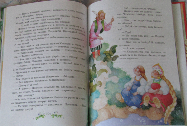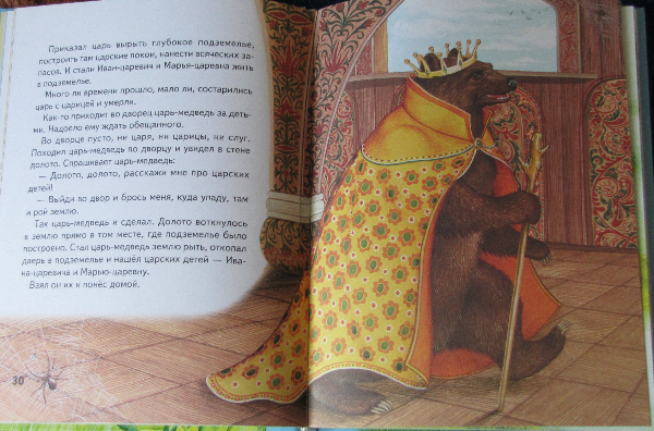 Теперь о моменте, который я знала заблаговременно - сказки иллюстрированы разными художниками. Тут я более спокойна, хотя для кого-то это весомый аргумент НЕ покупать книгу. Что-то из иллюстраций мне понравилось, что-то меньше, чьи-то лица показались как из Музея восковых фигур:))) Посмотрим - будет ли так критичен Матюха:)
