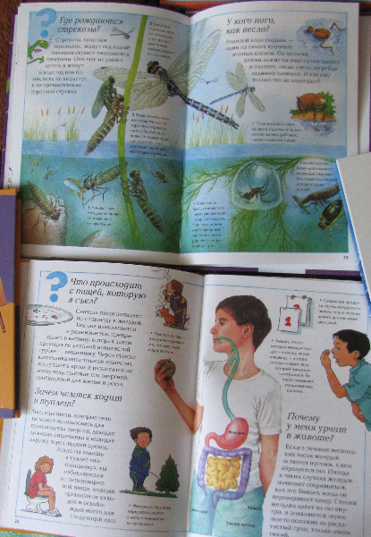 Но тут я могу объяснить покупку ("еще бы, - как говорит моя мама про меня - всегда выкрутится, всегда найдет, что сказать"). У нас опять же энциклопедии остались в Москве (гыыы, бедные наши московские книги. сколько раз я их вспоминала за лето...:))), а интерес к насекомым от стадии теории, перешедшей в практику, у Матвея не угас. И книжки, взятые с собой "Кто живет у нас на даче?" - "От мала и до велика" и "Букашки" изучены вдоль и поперек. И в эл.виде почитали худ.литературу о всяких букашках/муравьишках. И энциклопедии для умников и умниц в Лабе лежат без фотографий разворотов - мучения, что же там внутри. а вдруг нам это надо. И тут эта акция махаоновская в Лабиринте... "Ну не шмогла!!!" (с) :)))))