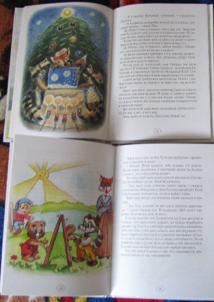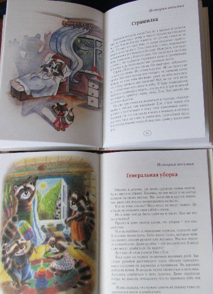 И главное (это и не секрет был. просто я обнаружила непосредственно взяв в руки:))) - книги иллюстрировали разные люди. Новые истории - такие теплые нежные рисунки. Я можно сказать и из-за них тоже повелась на покупку. А в первой книге слабая пародия на Крошку Енота из всеми известного нами мульта. И у мамы его тоже проблемы с фэйсом глазами. И вообще мне как-то не очень понравился стиль художника... Ну да ладно, что уж теперь ворчать, сама виновата он сам пришел (с). Будем надеяться, что содержание затмит все эти недостатки:)))