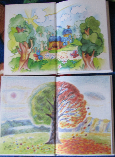 Книга абсолютно новая, нечитанная, с запахом типографской краски. Я сначала сомневалась - а цветная ли она будет. Может просто цветные вкладки, а так ч/б иллюстрации, как в переиздании? Вообщем, все в порядке оказалось. Я счастлива! :))