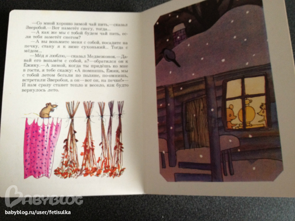 и напоследок, самая моя любимая - Волшебная травка зверобой, по рассказу Сергея Козлова....это одна из историй ежика и медвежонка...ну необычайно теплая книга...искала потом в интернете современные издания приключений ежикаи медведонка, но как-то достойные мне не попадались...может быть, посоветуете какое?????буду рада ссылкам....