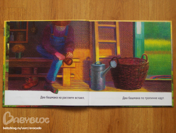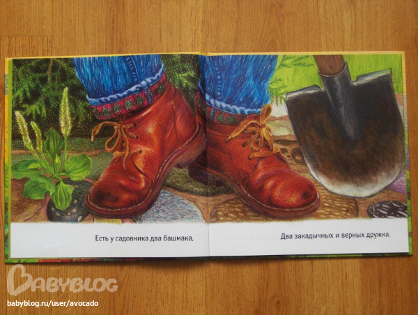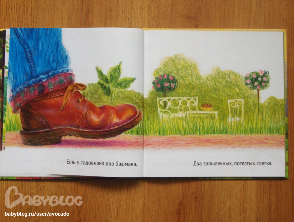 Стихи все так же поэтизируют повседневный быт – мини-эпос о двух башмаках садовника, который любит природу и труд. Очень красивые иллюстрации, в унисон к лирической теме о жизни садовника в гармонии с собой и с миром))