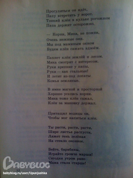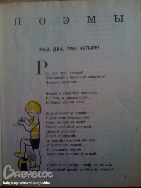 Ну и поэма Раз, два, три, четыре! Как мама мальчика я вообще без слёз её читать не могу, до чего трогательно )