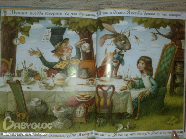 И взрослый вариант потом будет интересен, потому что в нем огромное количество всего, что не вошло в детскую книгу - разговоры там всякие. размышления Алисы, стихи...