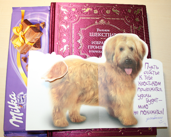Дома... открыв уголочек посылки... я не поверила своим глазам!!!! знакомая бардовая обложка отливающая шелковистым блеском! и кусочек открытки! все это ... я поняла!!!!... и вспомнила Яночку и уже с нетерпением вскрыла всю бандерольку и с трепещущим сердцем читала строки открытки и письма. я не буду говорить то, что было написано там, оно для меня очень личное, но особо хочу сказать спасибо за слезы радости, потому что я разревелась как маленькая девочка, которой вернули отобранную шоколадку. Такие слезы... они как бальзам, который лечит все раны и шрамы. А шоколадка там и правда была! да еще такая огромная!!!