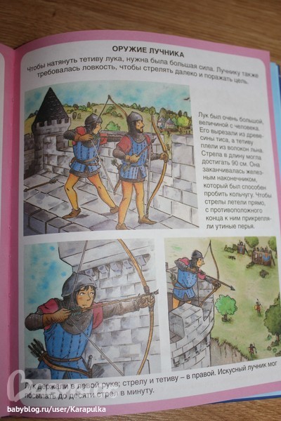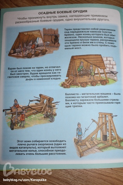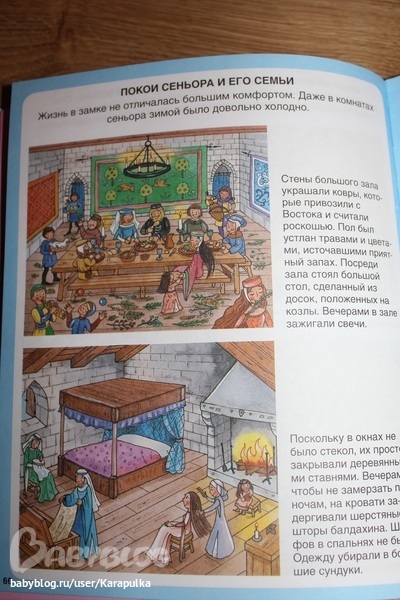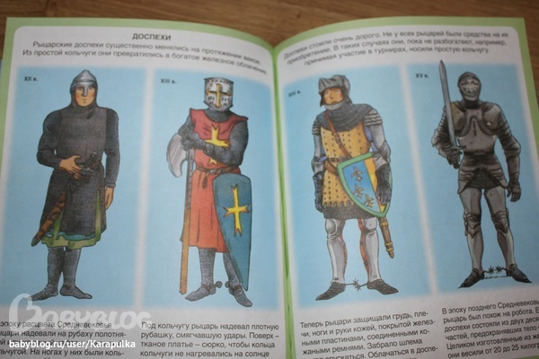 отзывыДавно хочу рассказать о нашей любимой книге на протяжении где-то полугода. Мой сын сейчас просто бредит богатырями, рыцарями. драконами, мечами и доспехами... Знаю, что в возрасте 3-4 лет многие мальчишки увлечены этой темой. Но т.к. агрессии и войны хочется как можно меньше, и даже ежедневно убиваемых драконов мне как-то жаль, к выбору литературы хочется подойти предельно осторожно. Одну замечательную книгу мы всё-таки приобрели. И ребёнок её очень любит. Помимо оружия и сражений, в книге много рассказано про быт и устои жизни в средневековых замках. Интересно и познавательно даже для мам))