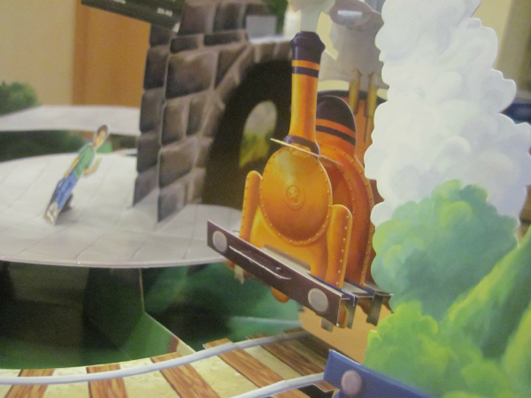 Разврот с паровозом. Рельсы надвисные, паровозик с мелкими движущимися деталями.