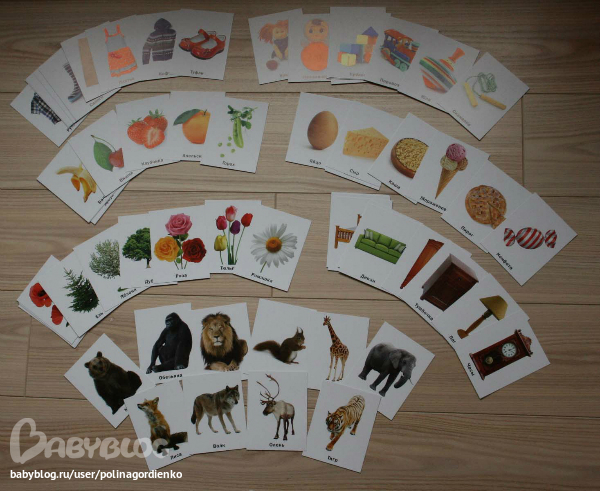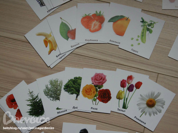 1. Выходит, что какие-то темы представлены скудно и, конечно, только этим набором карточек не обойтись, особенно касается животных, деревьев, овощей и фруктов, одежды.