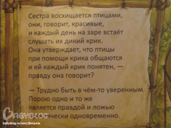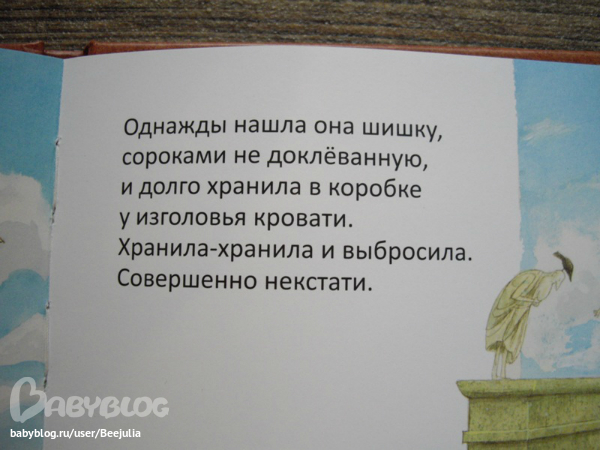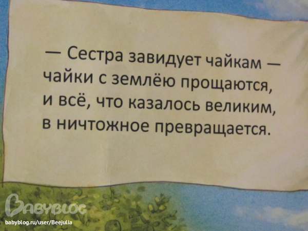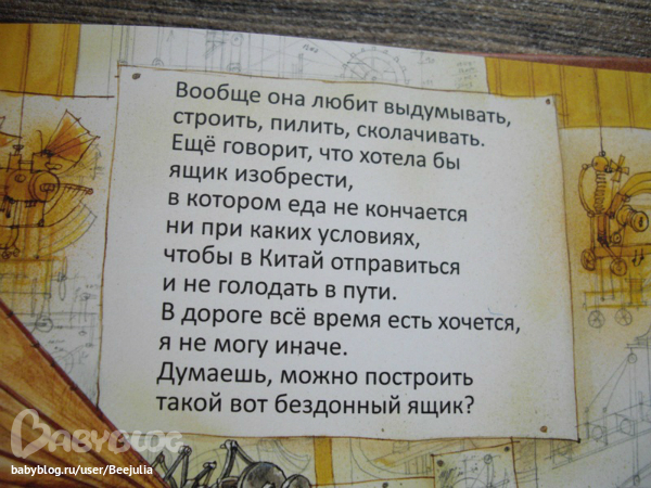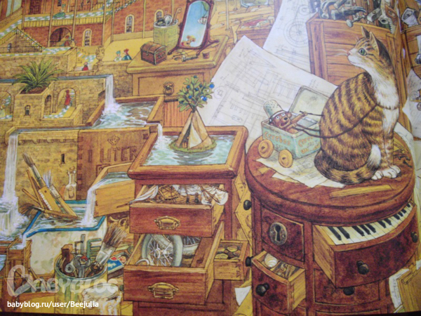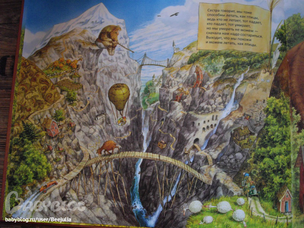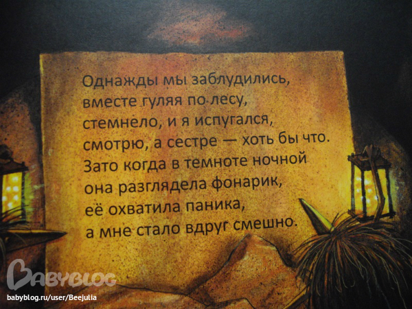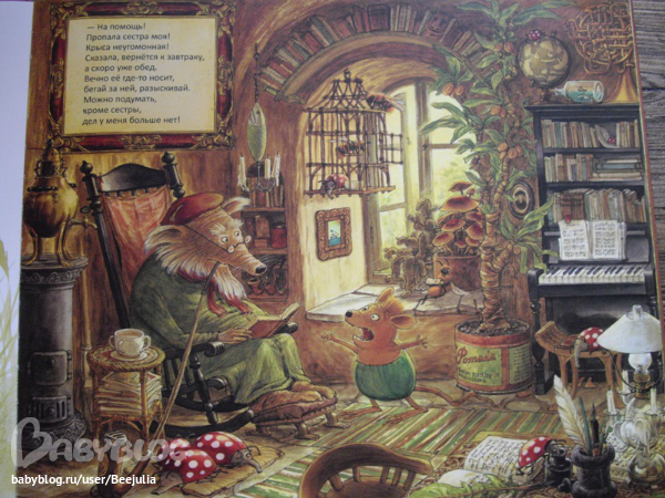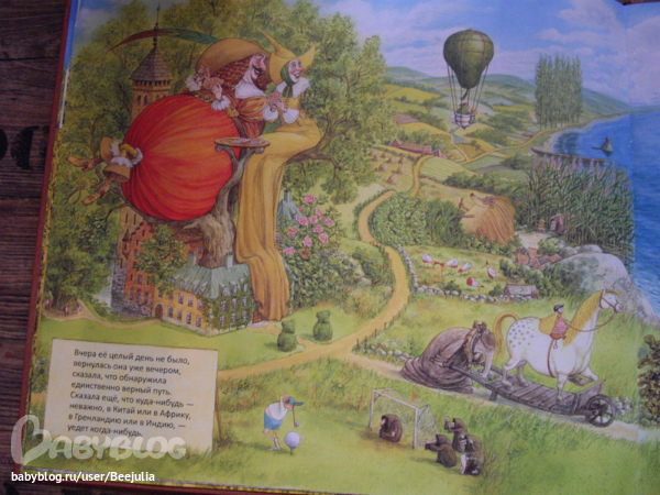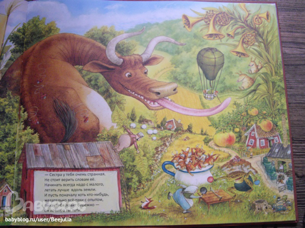 Картинки очень делизированны, и их можно рассматривать отдельно от текста. Каждый раз в этих картинках ты открываешь для себя что-то новое, настолько они богаты персонажами и сюжетами. А еще на каждой страничке можно искать саму сестренку.