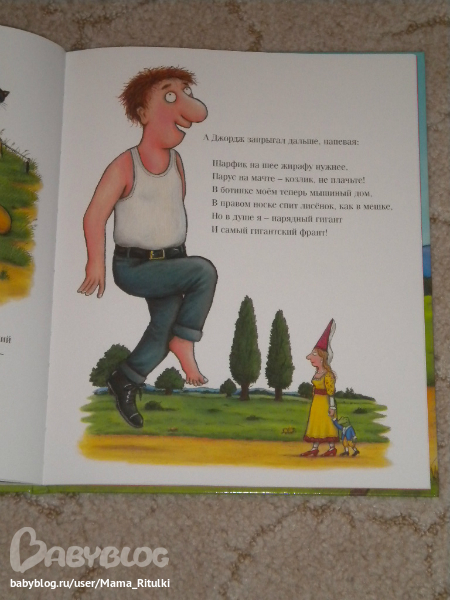 Джордж нас покорил. и своей щедростью, и своим милым трогательным видом. Ну в общем книга Новый наряд великана - супер!!! это заявляю и я, и дочь. Сегодня мы перечитывали её....... ээээ... нет, не напишу сколько раз. Это ж и книжка-история, и книжка для рассматривания)) вот мы и читаем её по-разному. То просто прочтем историю, как она есть (ну в сокращении, конечно, 1,1-ребенку прозу вообще сложно читать, мне кажется. Ну кроме Лиса и мышонка и Пса по имени Боб))))