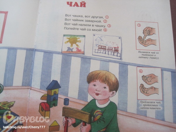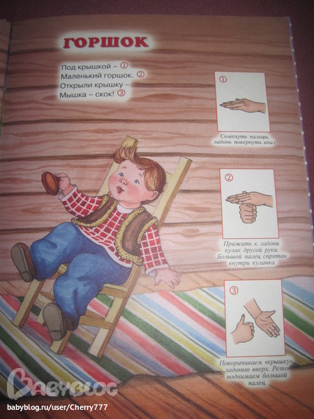 3. Сейчас еще начала показывать пальчиковые игры, возможно, еще рано, по сама показываю, Мирослава пытается повторять.