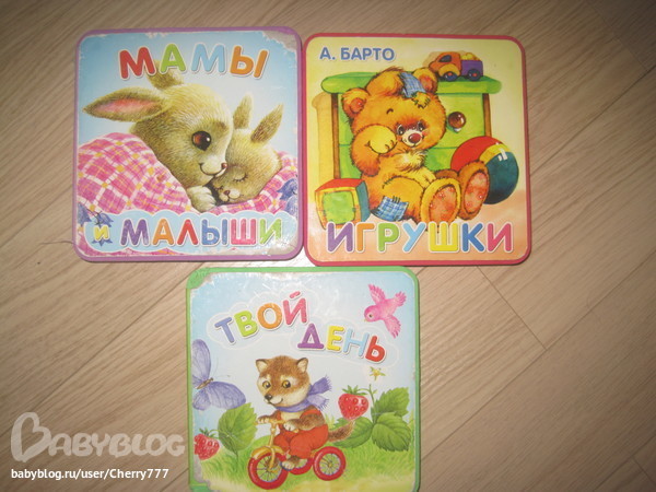 Книги легкие, удобный формат, прочный картон, хорошо чистится, толстенькие странички, удобно листать, милые иллюстрации, теплые, мама и детишки, дочка больше любит разглядывать и прижиматься ко мне как на картинках (вторая книга). есть стихи Агнии Барто из этой серии, нравятся иллюстрации, как раз на это возраст серия.