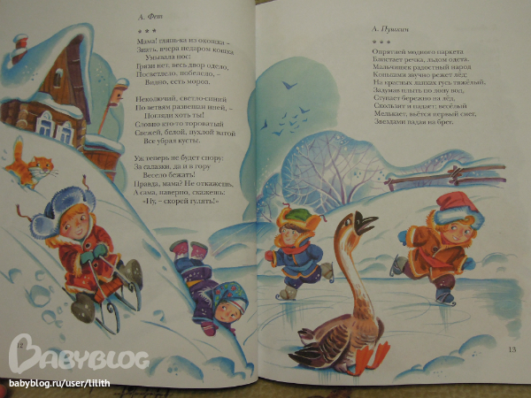 Ну и иллюстрации, собственно. Очень нежные, зимние, снежные. Книжка очень атмосферная, после нее так и хочется сходить в снежки поиграть или бабу слепить )