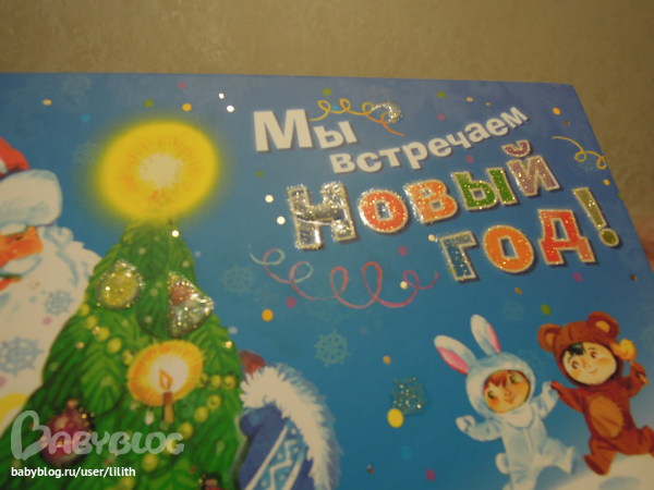 Теперь о плохом. Книга покупалась в прошлом году осенью. С февраля, наверное, стояла на полке и не читалась. И вот, достаю я ее, чтобы Лене отфоткать, и вижу, что на обложке часть блестящих форагментов отстало от книжки и лопнуло. Не прям ужас-ужас, но неприятно все равно.