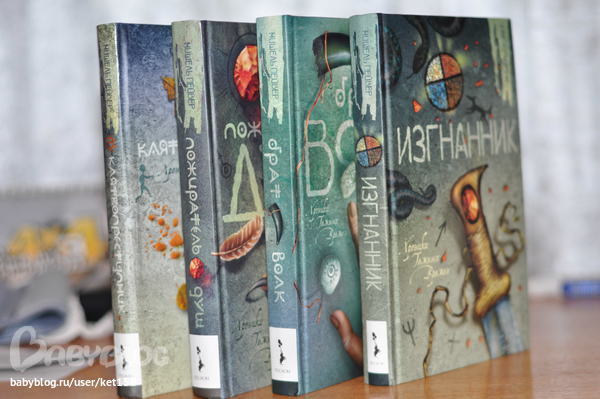 Книги все на хорошем офсете,белые листики и крудний шрифт. В суперобложках каждая и когда они стоят рядом,получается картина, вот так: