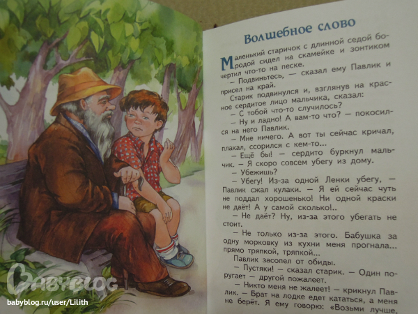 Начали читать с Никой, и одним из первых нам попался рассказ "Волшебное слово". Я читала и наблюдала за Никиной реакцией, ибо посмотреть было на что. Ребенок слушал всем телом, покачиваясь в ритме слов, хмурясь вместе с недовольным мальчиком, улыбаясь каждой клеточкой лица, когда мальчик просил "Пожалуйста". Она ни разу не отвлеклась и не отвела глаза от книжки. Я еще никогда не видела у Вероники такой эмоциональной реакции на книгу!