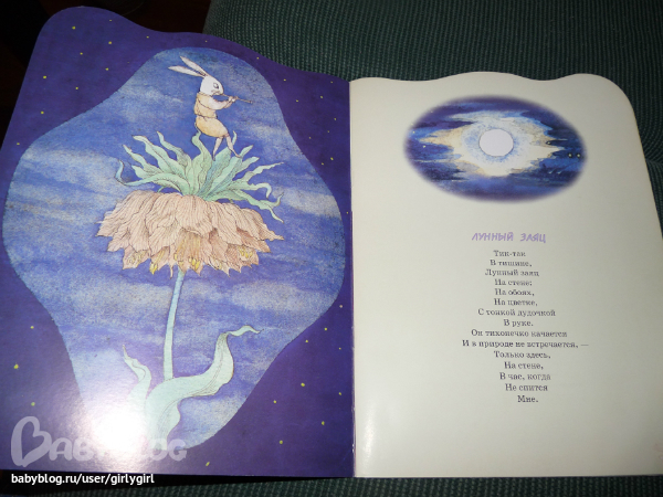 3. эта книга, наверное, в представлении не нуждается! стихи великолепные! Платон просит перечитать по неск раз и уже выучил некоторые стихи (кивает в нужных местах нет-нет и т п). да мне и самой огромное удовольствие доставляет их перечитывать! а с лунным зайцем мы засыпаем)