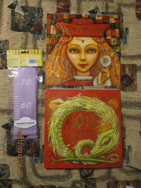 Подарочные календари от Росмэна (кстати, я написала, что хочу переиздания Пилле-Рийн и Добываек Мэри Нортон, а вы?) и ростомер - от них же. Ростомер отнесу в детский сад:)