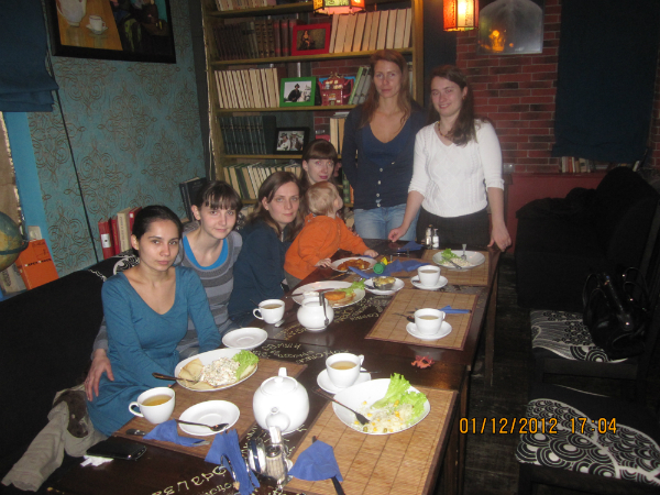 У меня была мысль в семь вечера уехать на поезде обратно в Воронеж (предварительно забрав у Иры мои закупочные книги). но девочки прямо-таки настояли на том, чтобы я пошла с ними в кафе:) Я согласилась - в конце концов, разве я каждый день бываю в Москве?