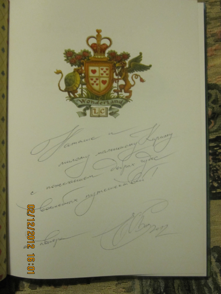 Распрощавшись с Леной, Машей и Лизой, мы с Ирой, Аллой и Ксюшей отправились....нет, не так - правильнее будет сказать - понеслись как ураган - по всем представленным книжным стендам:) У ИДМ меня ждала Алиса с Рэкхемом, заботливо забронированная за мной Олей Мега Ру. У Нигмы - два Волшебных котла. У Насти и Никиты - Метро и Город грамотеев. У Росмэна - Капризка (выбирала между ней и Кривулей. Кто в итоге победил, вы уже знаете:) У Речи - Юля-чистюля, С добрым утром!, Емелины небылицы, Приключения новогодних игрушек и кучка Гугуцэ (последнее - для меня и моих друзей, в ожидании обещанной автограф-сессии Бориса Диодорова). А вот Алису и Чеширский блокнот для автограф-сессии Елены Базановой я привезла аж из Воронежа:) О чем не приминула рассказать самой художнице:) Она так расчувствовалась, что....Но об этом позже:) Вообще Елена Базанова - такой чудесный, добрый и внимательный человек, что уходить от нее категорически не хотелось! Она с такой любовью и тщанием подписала книги, что я пожалела о том, что больше ничего с ее иллюстрациями нет:(