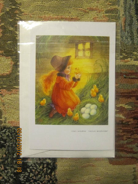 Так вот, рассказав Елене Базановой, что я приехала с Алисой аж из Воронежа, я и Ира - мы получили в подарок несколько вот таких чудесных открыток! Прямо хоть начинай коллекционировать открытки, так как...Но об этом - молчок позже:)