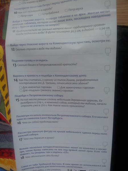 Несмотря на отличное качество они у меня вызвали некоторое разочарование,скорее всего потому что ожидала я несколько другого.Для меня путеводитель прежде всего план, руководство к действию,интересные маршруты,я надеялась найти что-то для себя новое в плане досуга с ребенком.Однако мне показалось что книга больше для школьников,содержит стандартный набор интересных мест и носит скорее энциклопедический характер,чем ознакомительный с городом,не учитывает интересов и особенностей ребенка.Много интересных фактов,текст адаптирован для детей,местами указана контактная информация,но на мой вкус неудобная разбивка.Мне кажется такие книги можно почитать перед поездкой,но не использовать как путеводитель,да и формат не слишком удобно носить с собой.Еще мне не по душе что задания надо в книге выполнять,уж больно требовательно я отношусь к таким вещам.Конечно мне более интересными показались книги о Санкт-Петербурге и его окрестностях,так как полезной информации для меня было больше.От Пскова до Архангельска брать уже не буду.