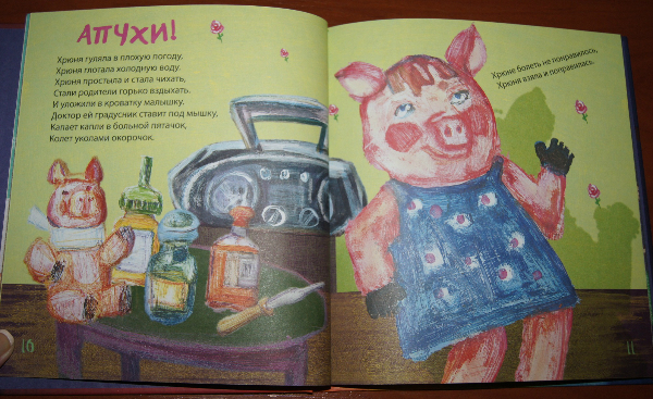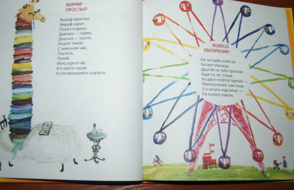 Стихи запоминающиеся, добрые и с юмором. Но я не очень люблю иллюстрации, стилизованные под детские рисунки, хотя, возможно, здесь это оправданно...)))