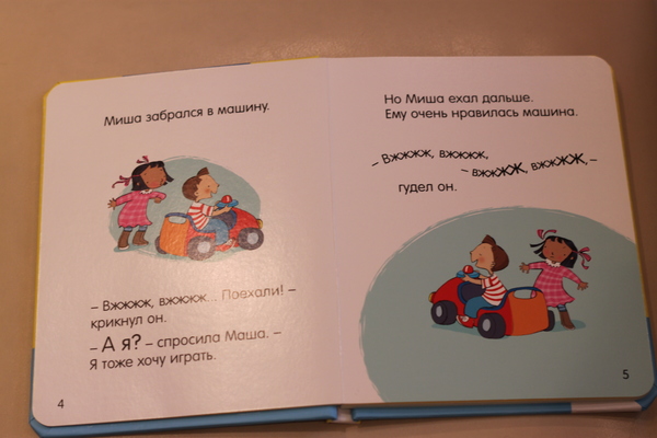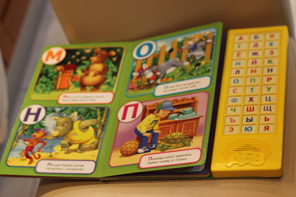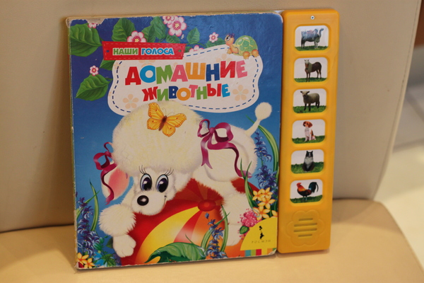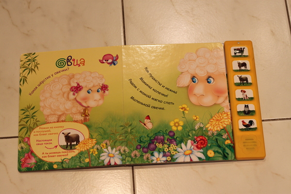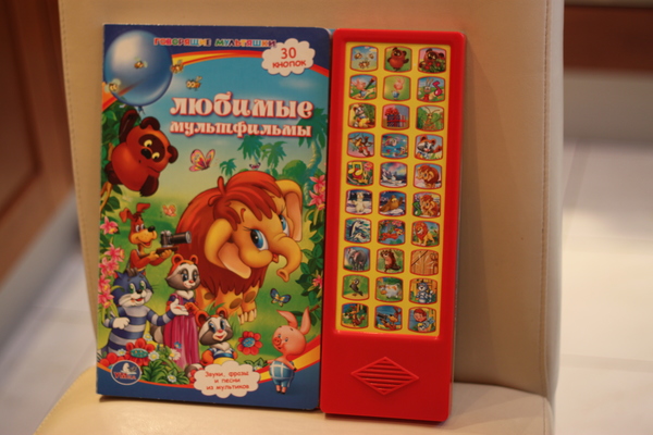 Самую первую книгу бабушка купила в годик. Первое время Ариане даже не хватало сил нажимать на кнопочки. Было время (примерно с года до 1,8), когда дочка обажала эти книжки!!! Сейчас уже не так часто их берет.
