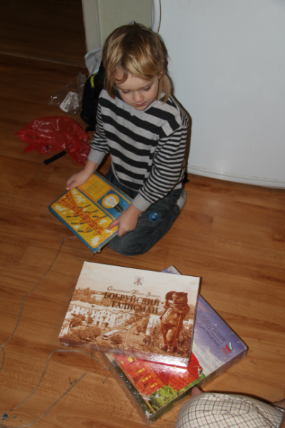 Вчера, забегая домой за формой для ребятенкиного тениса в ящике увидела квиточек, прибегаю на почту, а мне выносят огромную коробищу, тяжелую, я в машину, а там ребятенок: "А это что?" "А это почему" "А это мне". А до тенниса 10 минту, убежали и все занятие перень изнывал, что мы не распечатали посылку, вернулись после занятий, а у нас ещё в этот день и бассейн в 20-30, ужин уставшему ребенку не нужен))) емё нужна коробочка. А тут и папа подоспел.