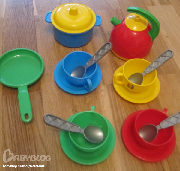 Набор посудки было сложно сфотографировать, так как сразу же пошел в дело! Докладываем: все куклы накормлены))))