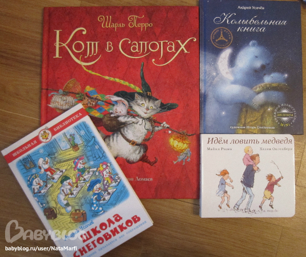 Когда читали медведя дочка так хохотала от всех этих "Хрум Хрясь...."))) "Кот в сапогах"... ммм... это для меня))) я так люблю Ломаева))) И для новогоднего настроения "Школа снеговиков" СПАСИБОООО!!!!