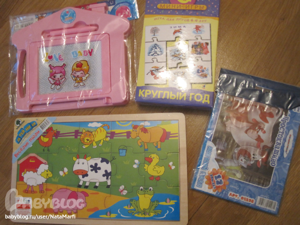 Различные развивалки. Доченька у меня любит пазлы! В игру пока не играли, но она классная! А вот пазл с животными отлично пошел, три раза собирала))) И рисует с удовольствием... А еще здесь мягкий пазл, такой здоровский!