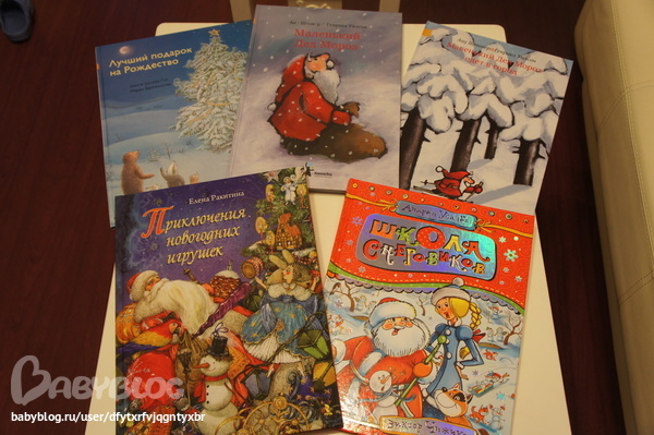 Нижние две нам пока рано, но зато про маленького Деда Мороза читаем с удовольствием, а "Подарки на Рождество" пока смотрим картинки...