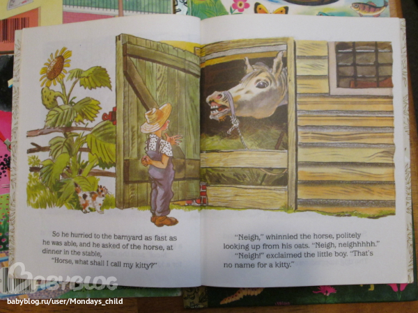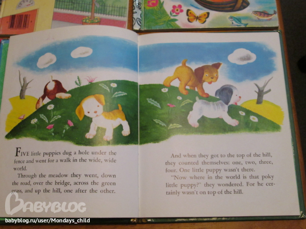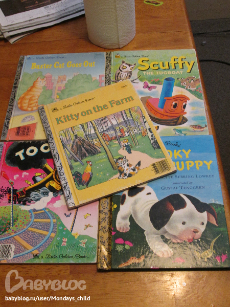 А вот это - замечательные книжки из старой серии A Little Golden Book. Они издаются и сейчас, но мне очень нравятся именно старые (или их переиздания). Там разные авторы и художники, какие-то интереснее, какие-то попроще, но в целом в них чувствуется какая-то душевная атмосфера) Рассказики там обычно недлинные, достаточно простые. Я детям на англ. не читаю, но в принципе года в 3-4 уже должны хорошо идти (для тех, у кого англ. родной).