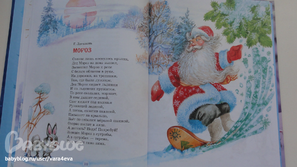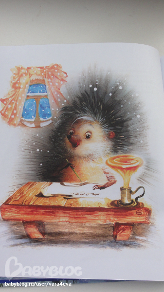 Книга просто расчудесная, пока правда нам ее рановато будет читать, но на вырост самое то! Какие иллюстрации, просто загляденье! Такие добрые, нежные плюшевые ежик и мишка ))Бумага плотная, шрифт крупный. Оформление очень праздничное, нарядное. Буквы и новогодние шары на елке на обложке украшены блестками, не осыпаются.