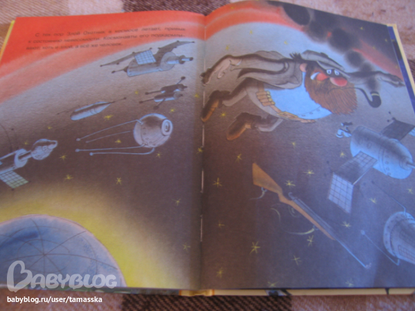 Любимый момент Левы! Злой охотник в космосе)))))))))))))))))))))) Которого, не смотря ни на что, подкармливают космонавты))) Такая вот добрая книга)))