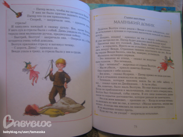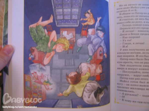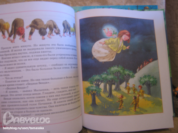 Иллюстрации в книге не с мультика и Питер Пен на них совсем другой (белокурый кучерявый паренек), но это и к лучшему. Не ограничает фантазию одним образом!