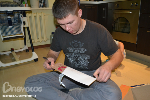 И вот, придя домой с заветной коробочкой вся наша семья накинулась на неё и папа её начал открывать... Почта России скотча не жалеет :)