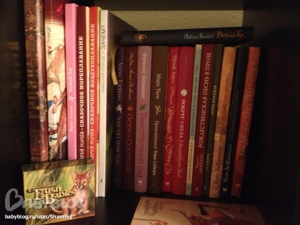 Тоже для маленьких. К сожалению, пока нет возможности избавиться от дурацкой привычки ставить книги, а перед ними еще ряд книг... Стараюсь ставить поменьше форматом, чтобы хоть корешок просматривался.