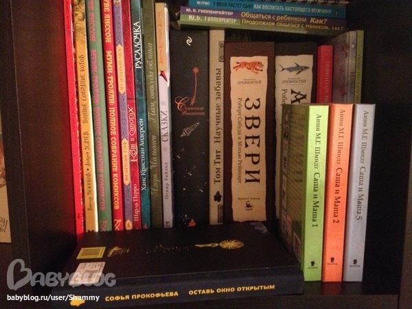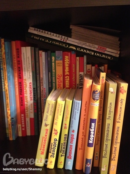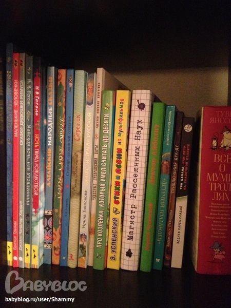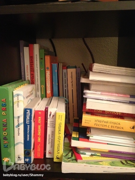 Тоже такая малышковская полка. Вообще старалась пониже выставить книги на ближайшее время.