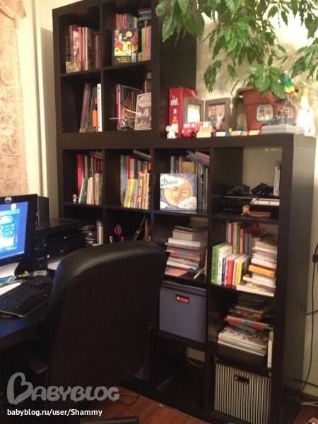 Коробок там две. Содержимое не стала фотографировать - тяжело вытаскивать. В основном там книги на постарше + много книг по детскому творчеству. Через полгодика-годик достану (надеюсь, Ромашка созреет до совместного творчества)))