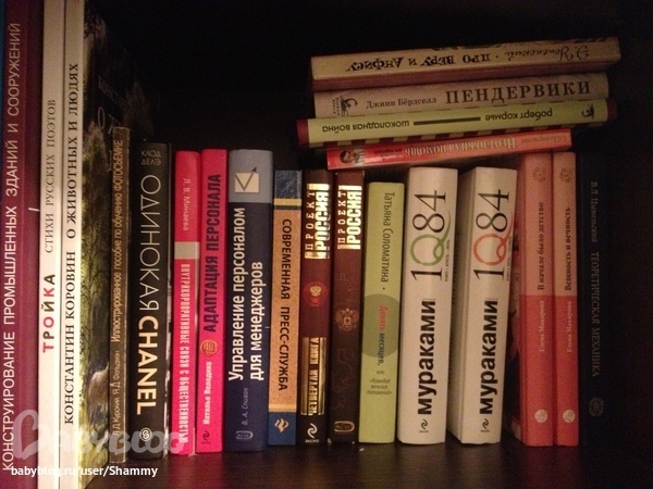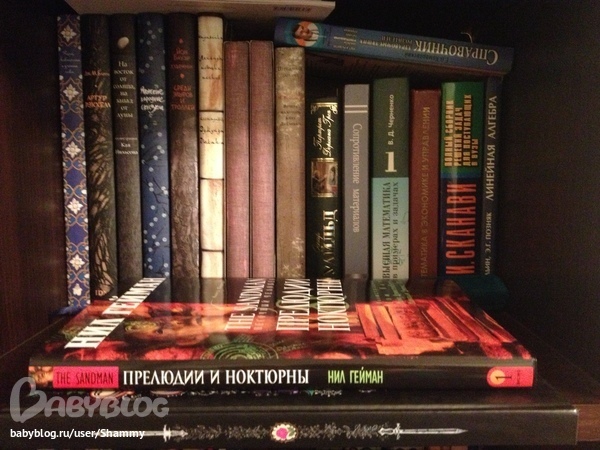 Вся серия "Отражение" ИДМ, Ундина и Онегин из серии "Книга с историей", Гоголь (тоже от ИДМ). Один Комаровский, один томик классики (Портрет Дориана Грея), комикс Геймана, Глазастик и ключ-неведимка (в принципе, ничего так сказка, мне понравилась)). Остальные 5 книг - книги мужа. Поскольку продолжать получать высшее он у меня не очень хочет, думаю, что можно книги убрать куда-нибудь в коробочку и занять место книгами детскими. Муж не заметит)))
