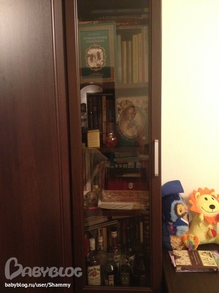 Здесь под книги отведено 4 полочки. Правда, нижняя по совместительству еще выполняет функцию бара)))